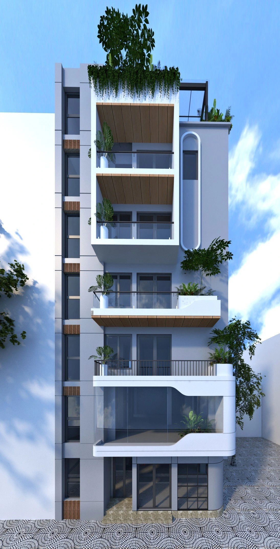 Tận hưởng cuộc sống hiện đại, tiện nghi giữa lòng phố thị sầm uất với mẫu nhà phố 6 tầng, diện tích sàn 65m2 tại Hoàng Văn Thái do Công ty Thiên An thiết kế và thi công.